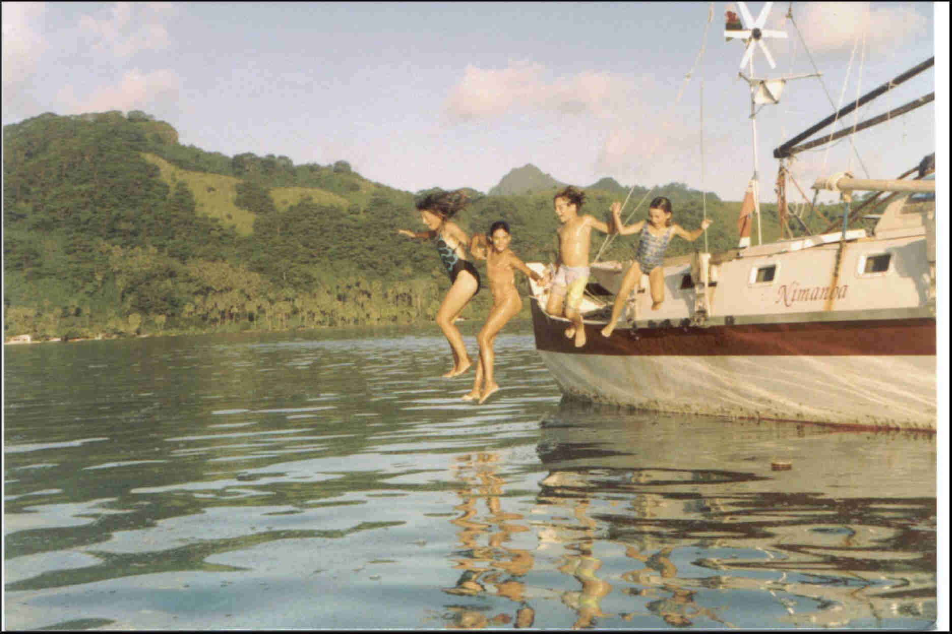 Jumping in some dodgy-looking water at Bora-Bora