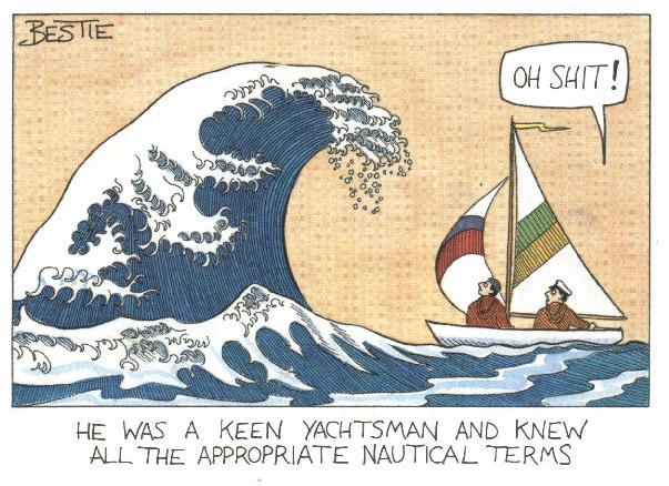 Adjusting the rigging in the Pacific (1,500 miles from land)